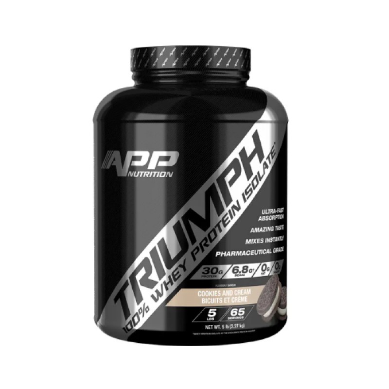 وی ایزوله ۱۰۰٪ ترایامف شرکت اپ نوتریشن دارای بالاترین میزان پروتئین در هر سروینگ مصرفی میباشد . این مکمل ۳۰ گرم پروتئین وی ۱۰۰ ایزوله به همراه ۶/۸ گرم BCAA’s و گلوتامین در هر سروینگ مصرفی در اختیار بدن قرار میدهد . ترایامف فاقد چربی ٬ شکر ٬ کربوهیدرات ٬ گلوتن ٬ آسپارتام و هرگونه ماده مصنوعی میباشد . وی پروتئین ۱۰۰٪ ایزوله ترایامف دارای سریعترین میزان جذب به منظور حداکثر عضله سازی میباشد .