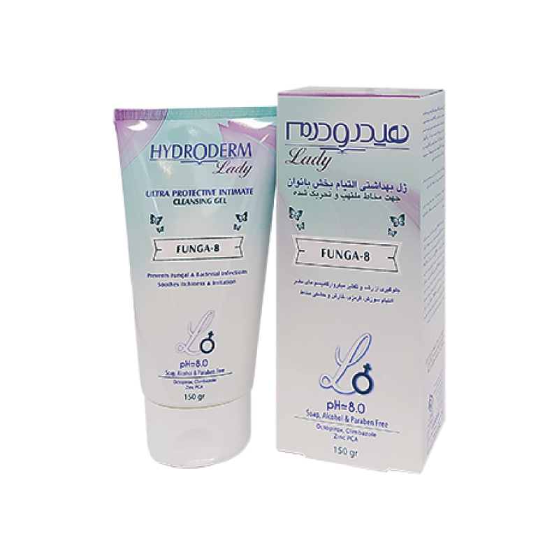 ژل بهداشتی بانوان لیدی فانگا8 مخصوص مخاط ملتهب و تحریک شده ناحیه واژینال هیدرودرم برای شستشوی روزانه مخاط ملتهب و تحریک شده ژنیتال و هنگام عفونت قارچی مناسب می باشد و به ایجاد تعادل در مخاط واژن کمک می کند. این محصول دارای پری بیوتیک و PH 8 بوده، در رفع سوزش، خارش و کاهش خشکی ناحیه موثر است. ژل بهداشتی بانوان لیدی فانگا8 مخصوص مخاط ملتهب و تحریک شده ناحیه واژینال هیدرودرم ضد قارچ و حاوی زینک، کلیمبازول و اوکتوپیروس بوده و خاصیت التیام بخش دارد. همچنین این محصول ضد حساسیت و ضد باکتری فاقد مواد صابونی، الکل و پارابن است.