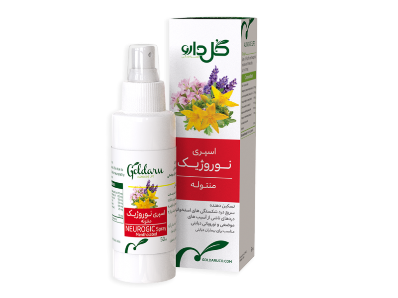 اسپری نوروژيك گلدارو بهعنوان مسکنی قوی برای کلیه دردهای عصبی نظیر فیبرومیالژی، زونا و گرفتگی عضلات مورد مصرف قرار میگیرد. اسپری نوروژیک منتوله گل دارو در ردیف داروهای داخلی است و گیاهی بودن این اسپری باعث میشود تا مصرفکنندگان نسبت به صفر بودن عوارض پیش رو اطمینان حاصل نمایند. این اسپری از ترکیباتی نظیر منتول، عصاره هیدرو الکلی علف چای، اسطوخودوس، اسانس شمعدانی معطر، اسانس اکالیپتوس، اسانس نارنج، اسانس درخت چای تهیه شده است که همگی در کنار یکدیگر به خواص ضدالتهابی، ضد قارچی و ضد میکروبی کمک میکنند. ضمن اینکه اسپری نوروژیک منتولد با رماتیسم و درد مقابله میکند. اسپری نوروژیک منتوله گل دارو ساخت کشور ایران است. در دستهبندی پزشکی در گروه مسکن گیاهی و آرامبخش و خوابآور و مکملها قرار میگیرد. دارای نشان استاندارد و سیب سلامت است. هیچگونه عوارضی ندارد. برای افراد بزرگسال مناسب است.