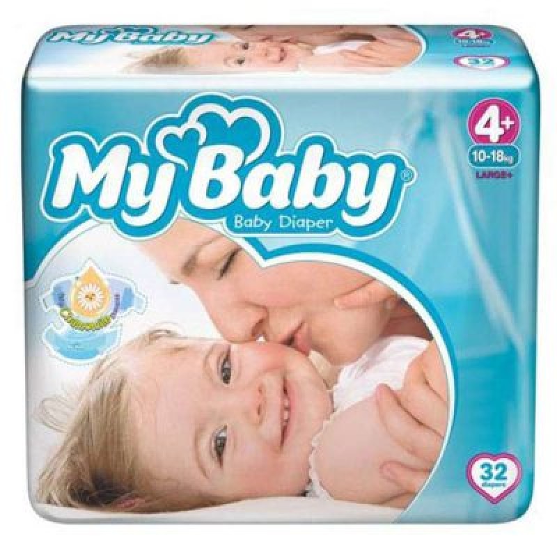 پوشک بچه مای بی بی سایز چهار بزرگ +4 (10تا18 کیلوگرم) بسته 32 عددی My Baby Chamomile Size 4 plus Diaper Pack of 32