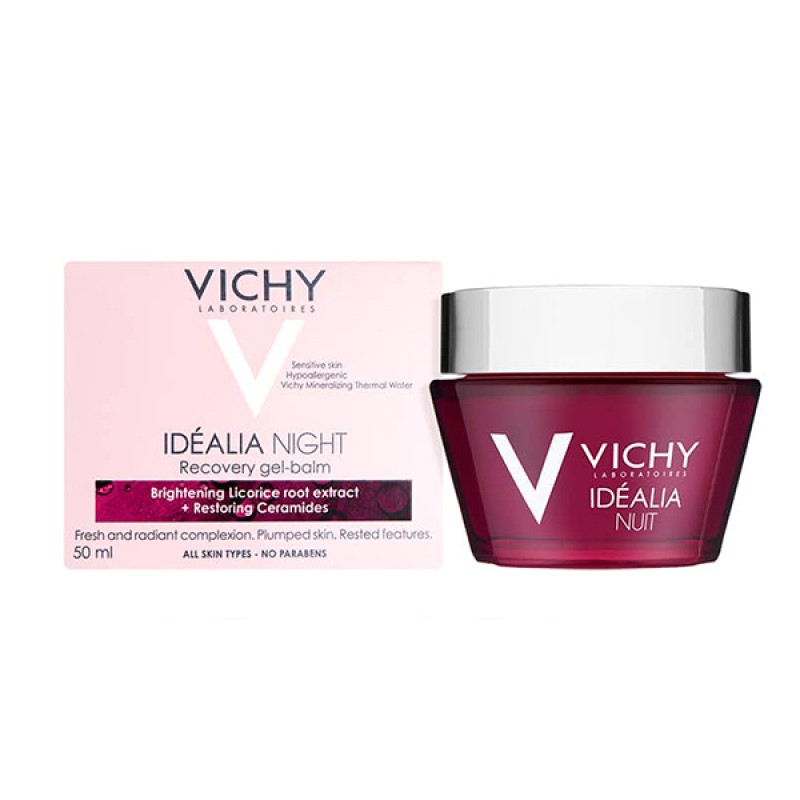 ژل بالم شب ترمیم کننده ایده آلیا ویشی حاوی ترکیبی ایده آل از عصاره بلوبری و چای سیاه برای انرژی بخشیدن به پوست و کاهش اثرات استرس می باشد. ژل بالم شب ترمیم کننده ایده آلیا ویشی بر روی چرخه شبانه بازسازی پوست اثر گذاشته و درصورتیکه خواب ناکافی داشته باشید، پوستتان همچنان ظاهری شاداب و سرحال تری خواهد داشت. ژل بالم شب ترمیم کننده ایده آلیا ویشی تنها پس از یک هفته پوست را به وضوح نرم و روشن تر می سازد و باعث می شود پوست ظاهری شاداب داشته باشد.