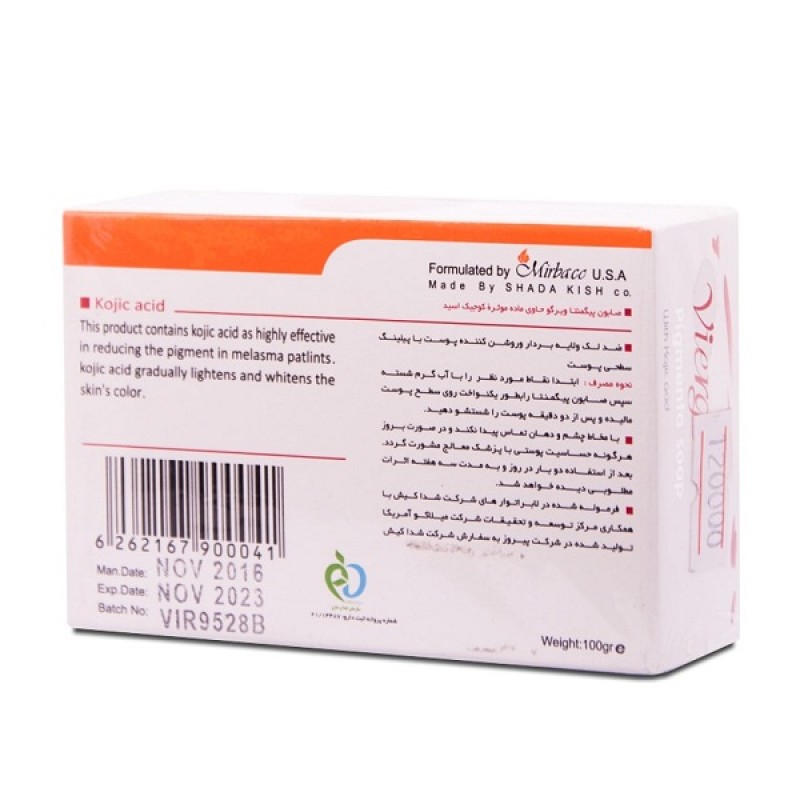 صابون پیگمنتا ویرگو حاوی ماده موثره کوجیک اسید 100 گرم Viergo Pigmenta Treatment Soap 100 g