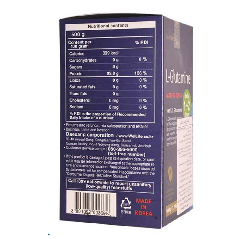 پودر ال گلوتامین ول لایف 500 گرم wellife L-Glutamine 500 gr